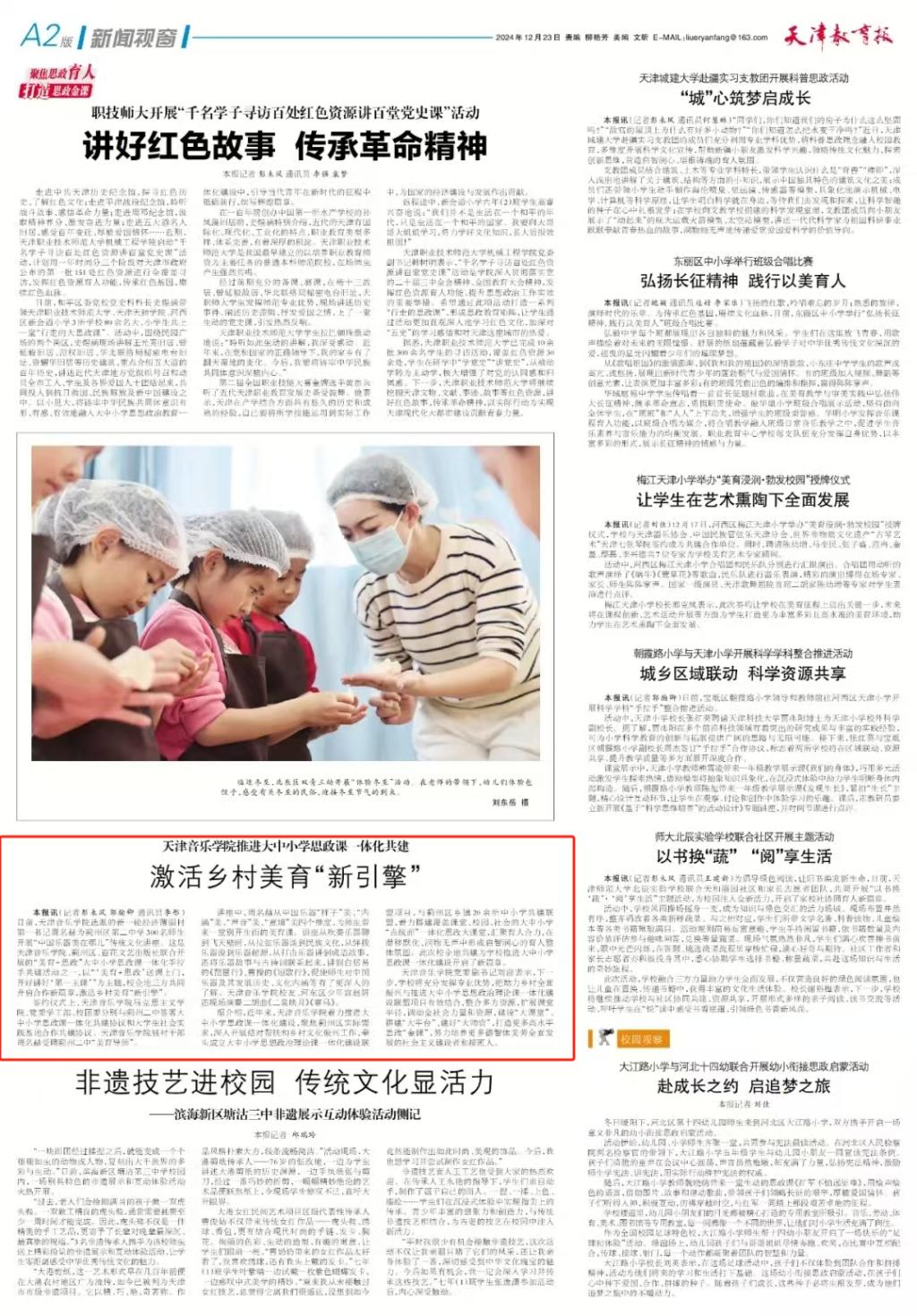 【天津教育報】天津音樂學院推進大中小學思政課一體化共建 激活鄉村美育“新引擎”
