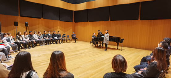 本次活動的指導(dǎo)教師音樂教育系王乃仟在音樂會后談到,同學(xué)們非常珍惜此次在天津茱莉亞學(xué)院學(xué)習(xí)的機(jī)會,演出的作品是從暑假期間就開始準(zhǔn)備,大家在歌詞語音拼讀、音樂風(fēng)格的探索、與合作鋼琴家之間的排練磨合都下了很大功夫,在各個方面都有了很大的進(jìn)步;在籌備方面,比如制定排練計(jì)劃、譜子的校對、翻譯,節(jié)目單設(shè)計(jì)、舞臺表演流程等方面也都進(jìn)行專業(yè)的訓(xùn)練與實(shí)踐。
