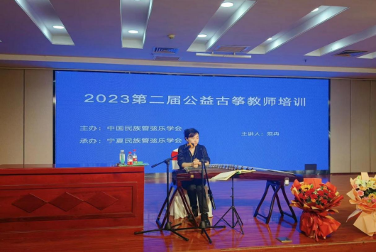 第二屆公益古箏師資培訓(xùn)活動(dòng)于2023年10月31日在銀川舉辦,旨在進(jìn)一步弘揚(yáng)民樂(lè)藝術(shù),提升民族器樂(lè)從教人員的演奏水平和教學(xué)能力及質(zhì)量,以滿(mǎn)足廣大民樂(lè)愛(ài)好者的現(xiàn)實(shí)需求。天津音樂(lè)學(xué)院范冉副教授來(lái)?yè)?dān)任授課教師。