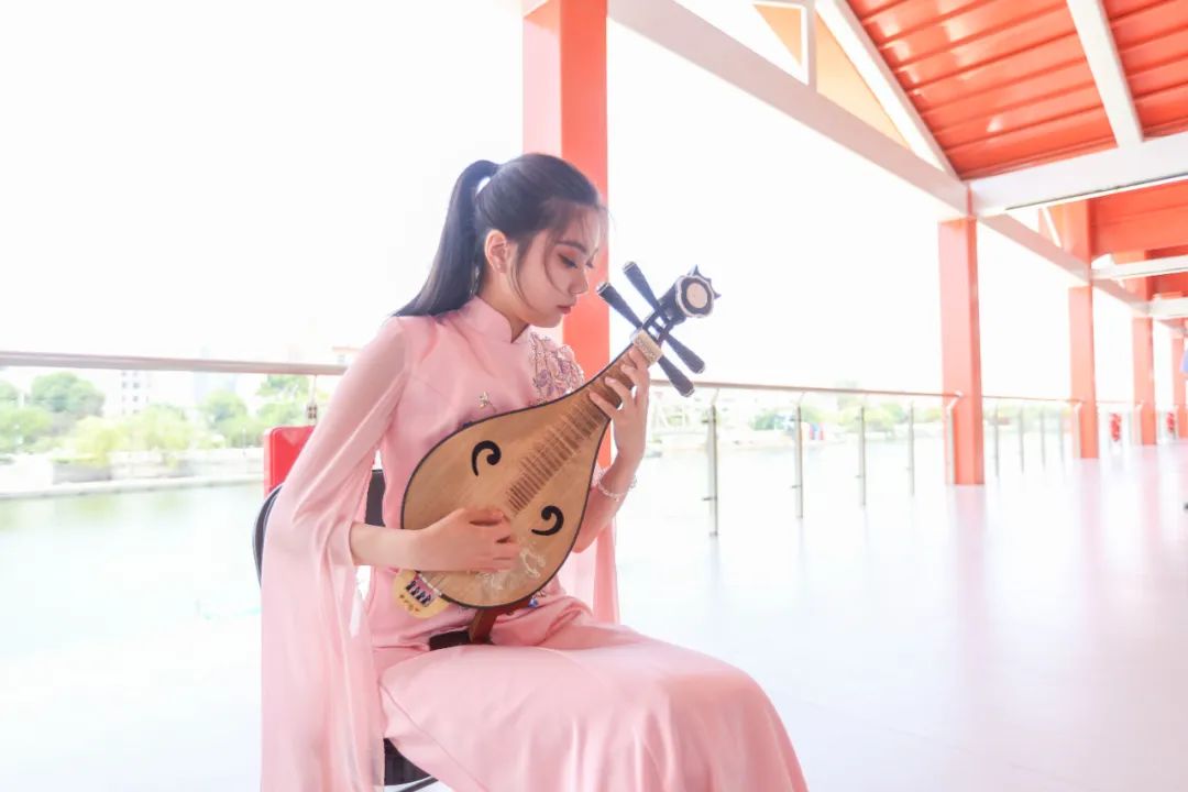 天津音樂(lè)學(xué)院采用古箏獨(dú)奏、二胡獨(dú)奏、柳琴獨(dú)奏、笙重奏組合、吹打樂(lè)組合等表演形式,用音樂(lè)里的豐富意象,帶動(dòng)聽(tīng)眾充沛情緒,贊美海河美麗風(fēng)光和群眾安居樂(lè)業(yè)的美好生活。