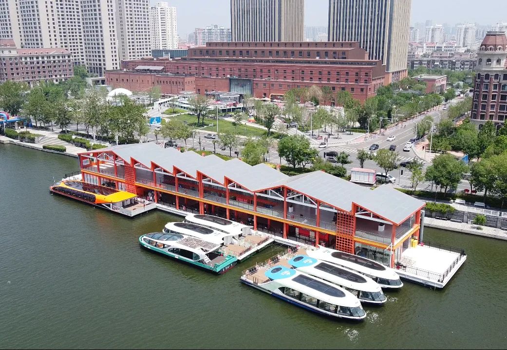 據(jù)了解,金阜碼頭位于河?xùn)|區(qū)海河?xùn)|路與北十五經(jīng)路交口正對(duì)親水平臺(tái),為躉船碼頭,由多艘躉船錨鏈緊密銜接而成,長(zhǎng)約100米、寬約13米,甲板層數(shù)2層,具備同時(shí)滿足游客候船及轉(zhuǎn)運(yùn)功能。