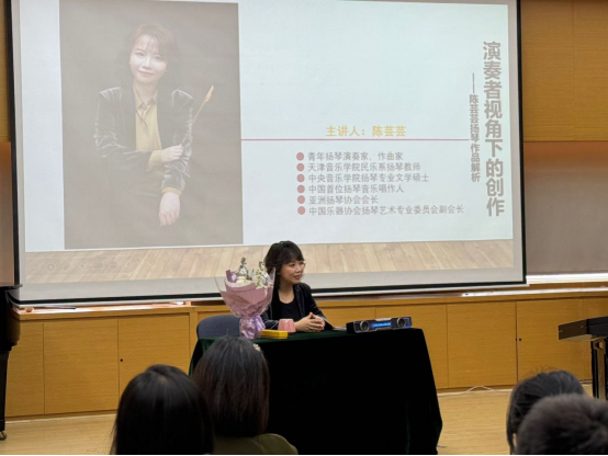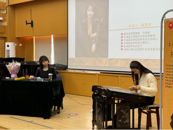 近日,我校民樂(lè)系揚(yáng)琴教師、作曲家、中國(guó)首位揚(yáng)琴音樂(lè)唱作人、現(xiàn)任亞洲揚(yáng)琴協(xié)會(huì)會(huì)長(zhǎng)及中國(guó)樂(lè)器協(xié)會(huì)揚(yáng)琴藝術(shù)專(zhuān)業(yè)委員會(huì)副會(huì)長(zhǎng)的陳蕓蕓老師應(yīng)邀,回到她附中時(shí)期就讀的母校四川音樂(lè)學(xué)院舉辦了“演奏者視角下的創(chuàng)作——陳蕓蕓揚(yáng)琴作品解析”學(xué)術(shù)講座及“故鄉(xiāng)的蕓——陳蕓蕓作品講析音樂(lè)會(huì)”兩場(chǎng)活動(dòng),反響熱烈!11月29日上午,“演奏者視角下的創(chuàng)作--陳蕓蕓揚(yáng)琴作品解析”學(xué)術(shù)講座在四川音樂(lè)學(xué)院民樂(lè)排練廳舉行。民樂(lè)系黨委書(shū)記張忠、副書(shū)記何麗娟、系彈撥教研室揚(yáng)琴師生及校外揚(yáng)琴愛(ài)好者參加了講座。張書(shū)記代表川音民樂(lè)系致辭,為大家介紹了民樂(lè)系秋季系列學(xué)術(shù)講座活動(dòng),也為陳蕓蕓老師回母校舉辦講座表示熱烈歡迎。