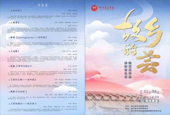 包括揚(yáng)琴與古箏《朱砂痣》、十二星座系列《DancingLeaves——天秤座》、《鉆石之眼——金牛座》和《孤島極光——處女座》、獨(dú)奏《蜀巷》和《湘墨》、室內(nèi)樂(lè)《紅絲絨》、《雪花與回憶》等多首原創(chuàng)作品,風(fēng)格各異。音樂(lè)會(huì)由李雪梅教授、陳蕓蕓老師擔(dān)任導(dǎo)聆,從樂(lè)曲創(chuàng)作靈感、演奏要領(lǐng)等方面進(jìn)行專(zhuān)業(yè)講解,帶領(lǐng)觀眾深入理解和欣賞作品。現(xiàn)場(chǎng)陳蕓蕓老師演奏了《朱砂痣》和《孤島極光——處女座》兩部作品,音樂(lè)會(huì)在陳老師彈唱中國(guó)當(dāng)代第一首揚(yáng)琴?gòu)棾瓌?chuàng)作品《云來(lái)云往》的優(yōu)美旋律中完美落幕。
