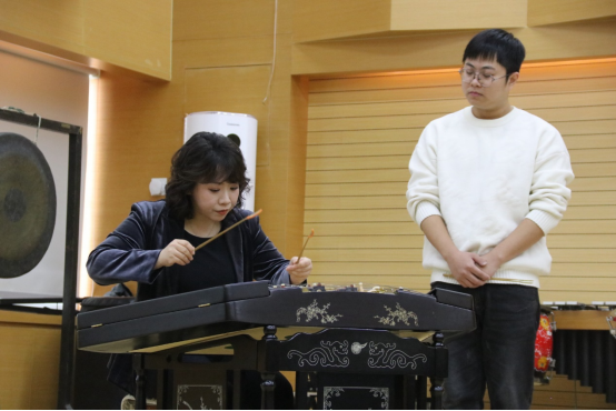 本次講座由民樂(lè)系彈撥教研室副主任李雪梅教授主持,陳蕓蕓老師與大家分享了其學(xué)習(xí)揚(yáng)琴的心路歷程和創(chuàng)作心得,深入探討自己的音樂(lè)創(chuàng)作鏈條可分為三個(gè)部分:創(chuàng)作、演奏與欣賞。其創(chuàng)作和演奏的著重點(diǎn):音樂(lè)創(chuàng)作要先感性后理性,而樂(lè)曲演奏要先理性后感性,演奏者要以“導(dǎo)演與演員”的思維進(jìn)行樂(lè)曲演奏。隨后陳蕓蕓老師與民樂(lè)系學(xué)生現(xiàn)場(chǎng)教學(xué)、互動(dòng)交流,講解其代表作品《蜀巷》、《鉆石之眼——金牛座》的創(chuàng)作思路與演奏要領(lǐng),現(xiàn)場(chǎng)師生們圍繞作品的“創(chuàng)”、“演”等方面進(jìn)行了積極的提問(wèn),陳老師一一解答使大家受益匪淺。