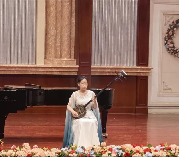 柳琴專業(yè)學(xué)生李明珠演奏了《雨后庭院》別具一格,演奏者以靈動的音符描繪出雨后庭院的清新寧靜,水珠滴落、花草含露的畫面躍然眼前,展現(xiàn)出柳琴獨特的清脆音色和表現(xiàn)力 。