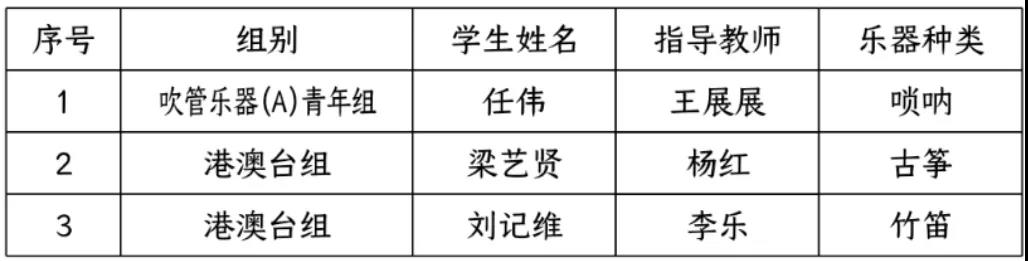 日前,由中華人民共和國(guó)文化部主辦,文化和旅游部科技教育司、遼寧省文化和旅游廳、遼寧省教育廳、大連藝術(shù)學(xué)院承辦,中國(guó)民族管弦樂(lè)學(xué)會(huì)協(xié)辦的“第七屆全國(guó)青少年民族器樂(lè)教育教學(xué)成果展示活動(dòng)”舉行終選,遴選結(jié)果揭曉。我系3個(gè)獨(dú)奏和2個(gè)組合入圍決賽,獲得了最終成果展示的資格,是我系參加同類活動(dòng)的歷史最好成績(jī)。