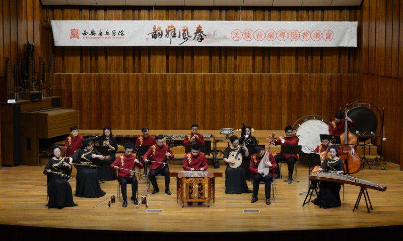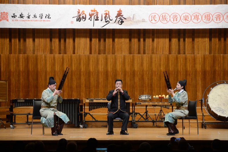 “秦風雅韻”民族音樂會是西安音樂學院民樂系精心打造的一臺以民樂系中青年骨干教師為核心,以“新”為主題的繼承、創新和開拓秦風秦韻的民族室內樂音樂會。其中“秦派二胡”、”秦派古箏”、“西安鼓樂”、“平湖派”琵琶、“長安笛韻”和排簫等演奏,豐富多樣,展示了西安音樂學院民樂系教學團隊的綜合風貌。