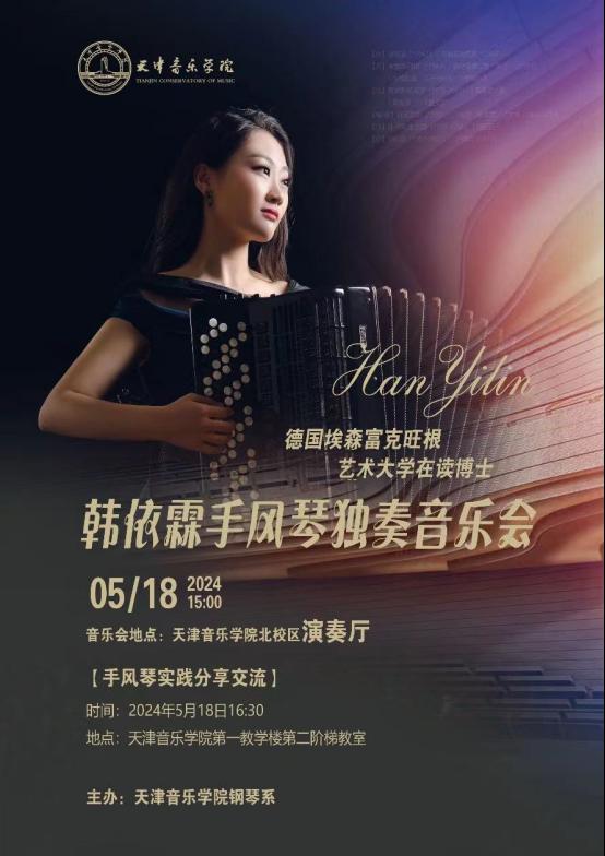 韓依霖曾獲德國第55屆克林根塔爾國際手風琴比賽演奏家組第一名、西班牙第28屆阿拉薩特國際手風琴比賽演奏家組第三名、瑞士阿羅薩古典音樂獎、中國第二屆蜂鳥音樂獎手風琴重奏組第一名、斯坦威獎學金等。作為中國年輕一代的手風琴藝術家,韓依霖活躍在國內外的音樂舞臺,曾在天津音樂廳、國家大劇院、維也納音樂廳、維也納音樂家協會、維也納國家歌劇院和維也納人民歌劇院演奏;受邀在塞爾維亞、巴西的國際手風琴藝術節上舉辦個人獨奏音樂會。韓依霖積極參與古典音樂普及、文化惠民等藝術活動,作為耶胡迪·梅紐因基金會的獎學金獲得者,定期舉辦公益音樂活動。特別是在新音樂與即興音樂表演方面,韓依霖與當代中外作曲家合作,探索手風琴藝術的未知道路,并把中國文化以音樂的形式傳播給更多的人。