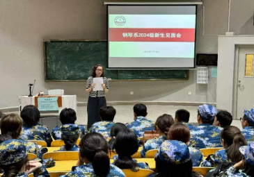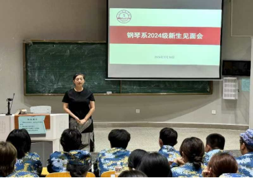 鋼琴系主任孟輝首先代表全體教師以及系里在校生們對(duì)各位新生的到來表示熱烈歡迎。接著,她回憶了學(xué)校以及鋼琴系的發(fā)展歷程,以飽含深情的語言講述了老一輩教授們?cè)诒鞠蹈鱾€(gè)專業(yè)領(lǐng)域里的辛勤付出,并表示崇敬與感激。孟輝主任表示,一要“學(xué)會(huì)熱愛所學(xué)專業(yè)”,鼓勵(lì)新生們主動(dòng)參與系內(nèi)實(shí)踐活動(dòng),在活動(dòng)中不斷總結(jié)經(jīng)驗(yàn);二要“感恩”,感謝遇到給予自己幫助的老師們,同時(shí)對(duì)鋼琴系現(xiàn)有師資力量做了簡(jiǎn)要介紹;三要“肯吃苦、能吃苦”,強(qiáng)調(diào)學(xué)生要重視紀(jì)律,養(yǎng)成規(guī)則意識(shí),始終在學(xué)業(yè)、生活中積極發(fā)揚(yáng)吃苦耐勞精神。