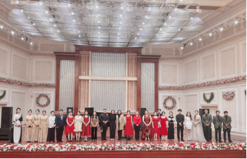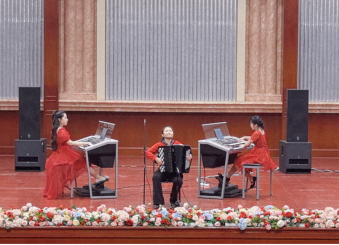 本場音樂會是電子管風琴專業藝術實踐“課程思政心行動”系列活動之一,也是天津音樂學院電子管風琴專業設立30年來首次在天津音樂廳舉辦專場音樂會。電子管風琴專業師生全員參加,為廣大音樂愛好者奉獻出一場酣暢淋漓的視聽盛宴。音樂會在本三李益嫻與歌劇學院聲樂專業頡軒呈合作演出《天路》中拉開序幕,熟悉的旋律與精彩的表演贏得了現場觀眾的熱烈掌聲為音樂會贏得了開門紅。接下來研究生焦晨怡、江青華與手風琴專業趙悠揚演奏舞劇《紅色娘子軍》選段、王錦藝、李益嫻演奏交響樂版《在希望的田野上》、本三李昱曈演奏《鴻雁》、本四王音淼、本二陳可菲爾與琵琶專業李思萌、二胡專業賈振涵共同演奏新民樂風作品《琵琶語》《歡沁》《蘇三組曲》等作品均受到廣大觀眾的喜愛與贊賞。現場氣氛熱烈、掌聲雷動。我院民樂系陳碩老師攜“鳳鳴鸞笙”樂團成員楊子涵、張艾婷、朱賀、王玉祥、劉貴豪、吳岳徽與電子管風琴專業優秀畢業生郭小鈺共同演奏由電子管風琴專業副教授張惟然老師編曲的《虎嘯虹灣圖》將音樂會推向第一個高潮。該曲描述了即將迎來新時代希望的曙光時人民內心的喜悅與激動心情,引起了現場觀眾的強烈共鳴。接下來本四趙杰、劉佳琪演奏的交響樂版《我的中國心》、研究生王求萌、本一吳偉杰與二胡專業賈振涵演奏《中國大運河——母親》深情講演繹了中華兒女對祖國母親深沉而真摯的熱愛。音樂會在本三史悅珅與鋼琴專業李博源演奏張惟然老師改編鋼琴協奏曲《黃河》第四樂章“保衛黃河”的熱烈氛圍中落下帷幕。意猶未盡的觀眾久久不愿離去,在與演職人員的互動交流中表達著對天津音樂學院藝術實踐課堂走出校園活動的肯定與支持。