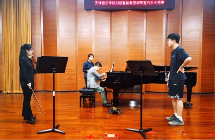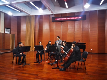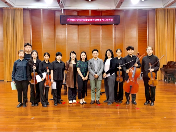 在大師課上,劉昭智副教授先后為三組室內樂同學深入講解了德沃夏克作曲的A大調第二鋼琴五重奏Op.81、米約作曲的鋼琴三重奏組曲 Op.157b與貝多芬作曲的D大調第五鋼琴三重奏Op.70 No.1“鬼魂”,從演奏技法、音響平衡、音樂表現、情感表達、風格把握、座位布局、團隊配合等多方面給予了細致入微的指導,獲得了星海師生的一致好評。
