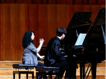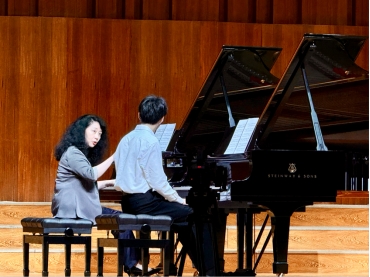 針對每位學生的演奏,常樺教授采用深入淺出的指導方式,從技術與藝術兩個維度展開細致點評,逐一剖析作品的旋律走向與和聲層次,針對觸鍵力度控制、踏板運用時機等關鍵問題給出專業建議,并通過親自彈奏演示優化方法。點評中,常樺教授既肯定學生演繹的閃光點,也精準指出可提升之處,引導學生更深刻地理解并貼合作曲家的創作意圖,生動風趣的表達讓現場氛圍輕松又專注,在場師生都感到收獲滿滿。