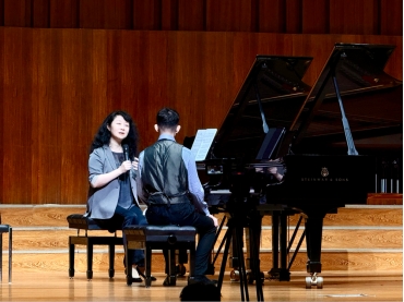 聘任儀式后,常樺教授帶來“談國內外重大賽事備賽”專題講座,圍繞“有選擇參賽”原則、曲目取舍與積累、各年級備賽要點等議題深入剖析,贏得全場師生熱烈掌聲。講座結束,常樺教授學生、中央音樂學院本科三年級周俊言登臺獻上鋼琴獨奏音樂會。