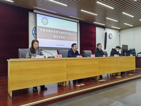 王歡在講話中指出,本輪巡察期間,巡察組認真貫徹巡視巡察工作部署,圍繞“三個聚焦”監督重點開展了全面的政治體檢,能夠與黨總支主要負責同志緊密溝通、緊緊依靠全體教職工,共同查擺問題、分析原因、研究解決辦法,切實做到同向用力、同題共答。他對巡察整改工作提出三點要求:一是要以高度的政治自覺著力增強巡察整改的主動性。作曲指揮系黨總支要把巡察整改作為重要政治任務抓緊抓實,作為不斷增強“四個意識”、堅定“四個自信”、捍衛“兩個確立”、做到“兩個維護”的實際行動;二是要以強烈的政治擔當著力形成巡察整改工作合力。作曲指揮系黨總支要統籌謀劃、部署推動,牢固樹立“一盤棋”的思想,牽住“主體責任”這個牛鼻子,主動進位、激發合力,堅持以上率下,做到目標到人、任務到人、責任到人、壓力傳導到人;三是要以務實的工作作風著力推動教育事業高質量發展。作曲指揮系黨總支要把握好這一重要契機,發揮以巡促改、以巡促建、以巡促治作用。作曲指揮系黨總支要持續深入學習貫徹習近平新時代中國特色社會主義思想和黨的二十大精神,鞏固深化主題教育成果,以奮發有為的精神狀態和強烈的責任擔當,帶領全體教職員工落實好巡察整改任務,切實把巡察工作轉化為促進事業發展的動力,推動作曲指揮系高質量發展。