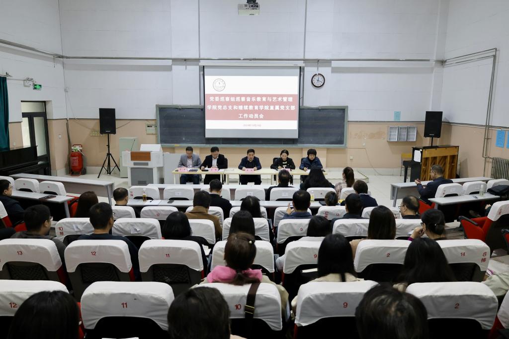(編輯 張永彬 攝像 買琪惠 審校 郭妍 劉彬)10月24日,學校在南院E座階梯教室召開黨委巡察組巡察音樂教育與藝術管理學院黨總支和繼續教育學院直屬黨支部工作動員會。校黨委書記、巡察工作領導小組組長王歡出席會議,黨委巡察工作辦公室主任郭妍,黨委巡察組組長劉彬,巡察組全體成員,音樂教育與藝術管理學院、繼續教育學院全體干部教師和學生黨員代表參加會議。會議由音樂教育與藝術管理學院黨總支書記魏麗霞主持。