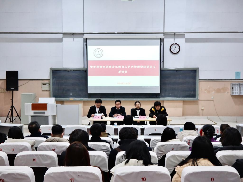(編輯:張永彬;攝影:劉錚;責任編輯:劉彬、郭妍)按照學校黨委巡察工作統一部署,2024年12月19日,學校召開黨委巡察組巡察音樂教育與藝術管理學院黨總支反饋會。學校黨委書記、巡察工作領導小組組長王歡出席會議并講話,巡察組組長劉彬代表黨委巡察組反饋巡察意見。組織部部長劉艷;派駐紀檢監察組副組長白茜茜;黨委巡察工作辦公室主任郭妍;黨委巡察組成員;音樂教育與藝術管理學院在職教職工以及學生黨員代表參加會議。會議由音樂教育與藝術管理學院黨總支書記魏麗霞主持。
