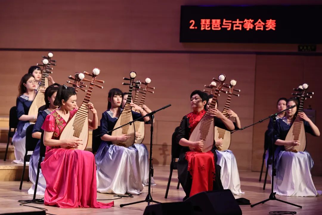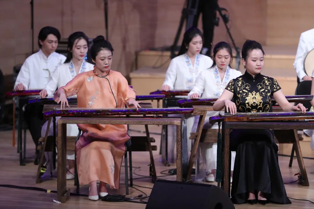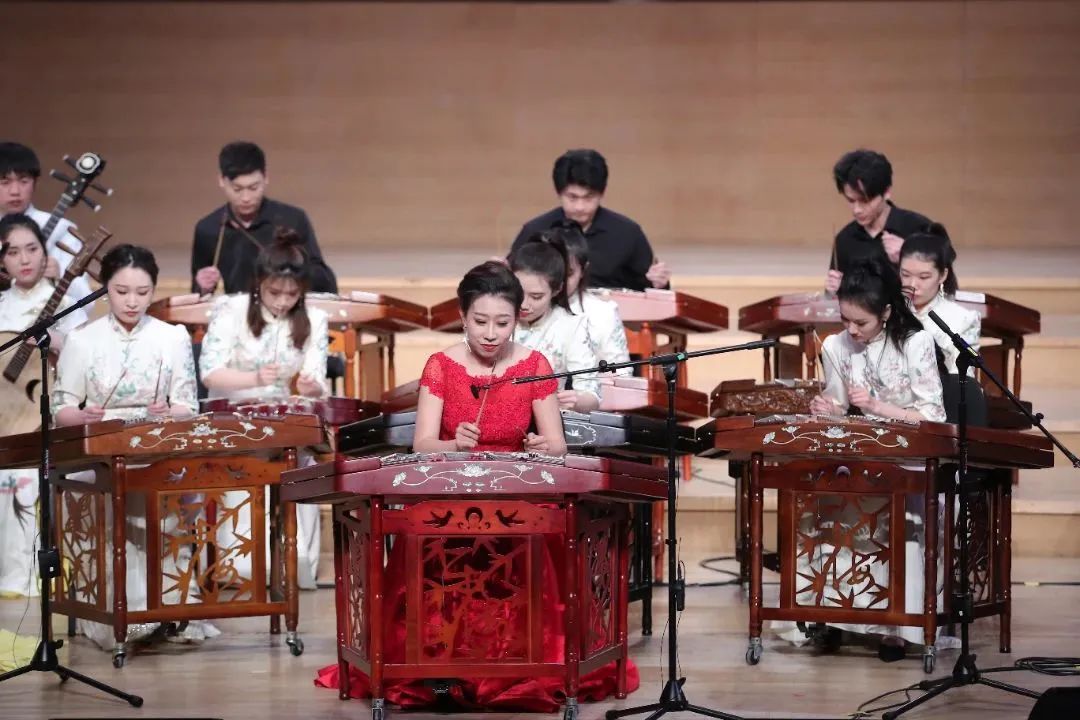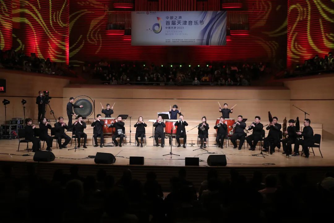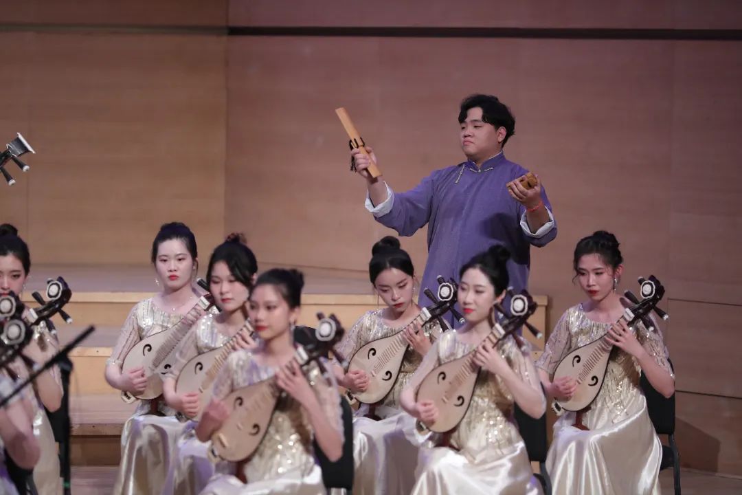 音樂會由天津音樂學院民樂系教師與青年學子為班底擔綱演奏,彰顯了學校在中國民族樂器演奏的深厚實力和人才儲備。整場音樂會由打擊樂、弓弦樂、彈撥樂、吹管樂等多個板塊組成。音樂會上半場由天津音樂學院師生共同呈現《太陽》《戰臺風》《十面埋伏》《二泉映月》《空山鳥語》《花梆子》《云南回憶》《翡翠》《京韻·春語》《流水》《十八板》《天津風韻》《嗩古吶今》等耳熟能詳、家喻戶曉的經典曲目,各類樂器呈現不同風格、不同形式的精彩演出,或氣勢磅礴、或弦音訴說、或悠長綿延,共同呈現中國民樂的獨特魅力,現場觀眾無不為之激動,為之贊嘆。