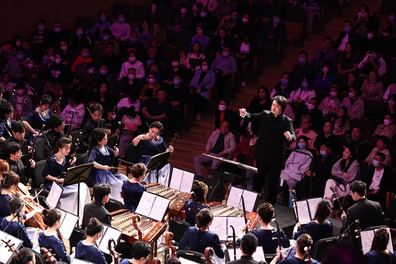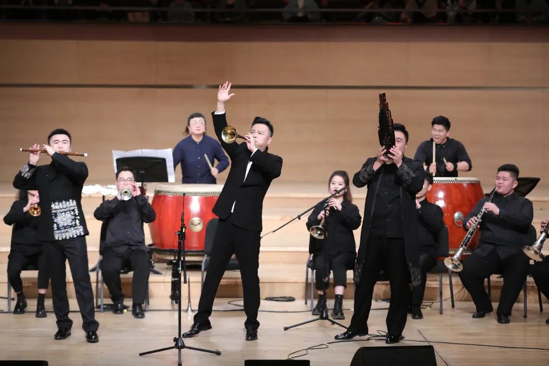 音樂會下半場,天津音樂學院青年指揮家王梓執棒青年民族管弦樂團奏響民族交響樂《慶典序曲》,震撼現場觀眾。