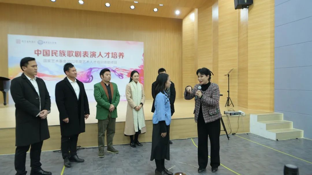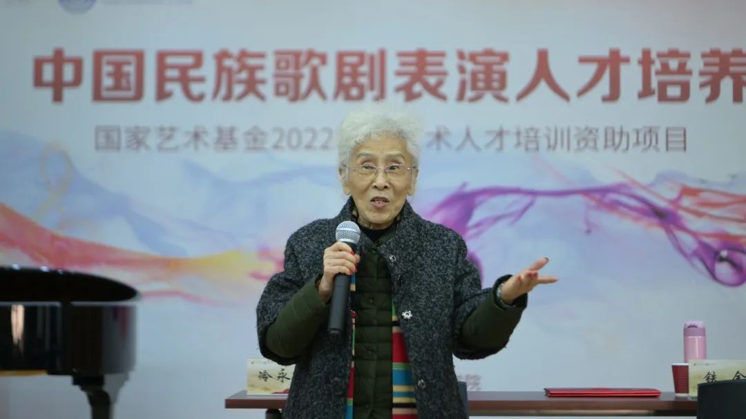 本站訊(編輯 魏俊汐 攝影 李棟 責任編輯 劉文平)4月6日下午,國家藝術基金資助項目《中國民族歌劇表演人才培養》大師班在天津音樂學院北院民族聲樂排練廳舉行。我國著名表演藝術教育家、原中國人民解放軍空軍政治部文工團導演冷永銘老師,著名女高音歌唱家、一級演員鐵金老師,為學員們講述歌劇《江姐》排演歷程,并結合現場演唱與輔導,帶來了一節生動的歌劇表演課程。
