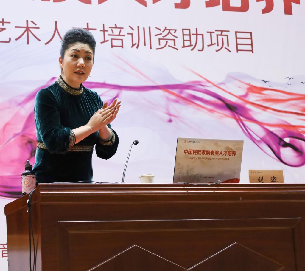 本站訊(編輯 趙彤 劉儀 攝影 繳惠琳 責任編輯 劉文平)4月5日下午,國家藝術基金資助項目《中國民族歌劇表演人才培養》大師班在天津音樂學院南校區報告廳舉行。大師班邀請了來自天津曲藝團一級演員、中國曲藝牡丹獎獲得者劉迎老師,為學員們講述有關天津時調及曲藝相關的知識,并結合現場表演與演唱,帶來了一節別開生面的曲藝課程。