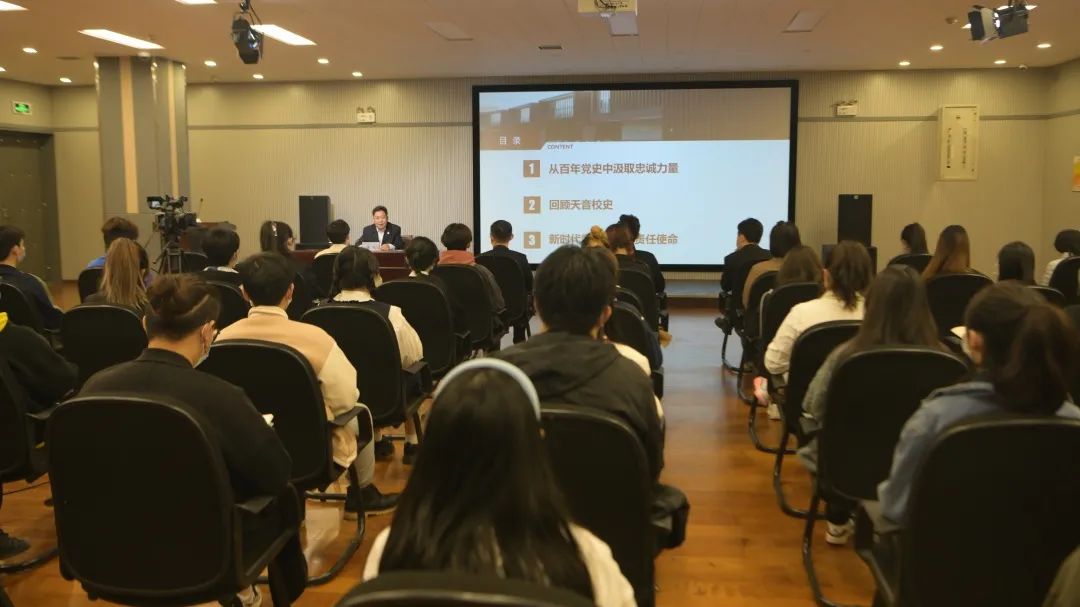 講授中,王歡通過引用天津音樂學院老院長王莘先生和杰出校友施光南先生的感人故事,與師生一同回顧了天音校史。他談到,“六十多年來,天音始終肩負著為新中國、為新時代培養德才兼備、全面發展的藝術人才的歷史使命,為社會輸送了一批又一批藝術人才,積淀了豐厚的藝術成果。每一位師生既要了解天音的歷史,更要從歷史中找到今天的前進方向,汲取力量、收獲自信?!彼€勉勵師生繼承老一輩天音人始終忠誠于黨的教育事業的“紅色基因”,汲取不斷探索、不斷創新的“天音力量”,弘揚和踐行為人民音樂事業、為音樂教育事業不懈奮斗的“天音精神”。