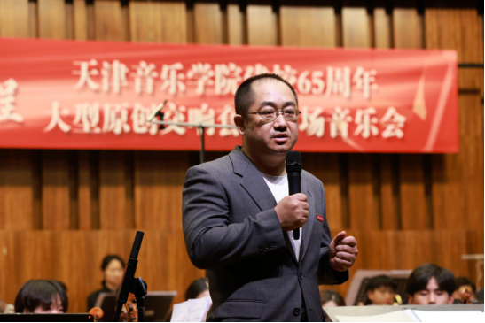 本次專場音樂會由院黨委書記王歡擔任總策劃,院長王宏偉擔任藝術總監,作曲系總支書記劉彬、管弦系總支書記王健英策劃,作曲系主任張海峰、管弦系主任宋強擔任音樂總監。音樂會的九部作品是作曲系教師自6月13日至8月15日歷時近兩月專為建校65周年獻禮而作,也是作曲系管弦樂創作成果的一次集中展示,每一位作曲家都親述了她(他)們的創作初衷與構思,九部作品個性鮮明,表達了對天津音樂學院的真摯情感,也展現了“天音人”積極探索、不斷進取的精神風貌。音樂會后,來自約克大學的馬丁教授表示:很高興有機會參加這場音樂會,并且領略到天津音樂學院作曲系的老師們高質量和多樣化的創作。祝賀九位作曲家成功的首演,以這樣一場鼓舞人心的方式來慶祝天津音樂學院建校65周年!