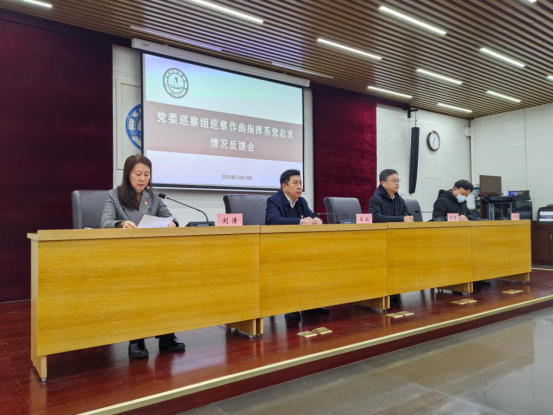 本站訊(編輯 張永彬 攝影 張永彬 責任編輯 郭妍 劉彬)按照學校黨委巡察工作統一部署,2023年12月14日,學校召開黨委巡察組巡察作曲指揮系黨總支情況反饋會。學校黨委書記、巡察工作領導小組組長王歡出席會議并講話,黨委常委、巡察組組長劉濤代表黨委巡察組反饋巡察意見。黨委常委、副院長刁可;黨委常委、組織部部長劉艷;派駐紀檢監察組副組長白茜茜;黨委巡察工作辦公室主任郭妍;黨委巡察組成員;作曲指揮系在職教職工以及學生黨員代表參加會議。會議由作曲指揮系黨總支書記劉彬主持。