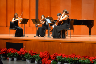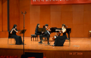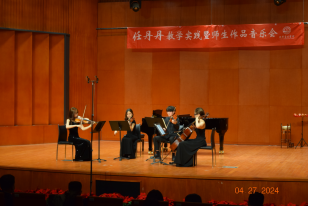 接下來是2020級本科生安藝寧根據評劇素材創作的弦樂四重奏《黛諾人生》,和致敬英雄的《焱》——為長笛、中提琴、大提琴與鋼琴而作。