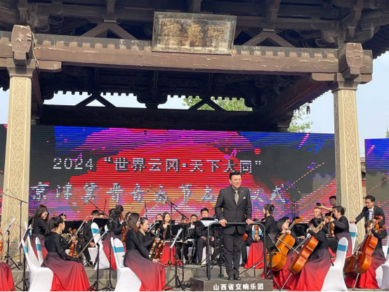 本站訊(編輯 張大鵬 徐莉莉 攝影 張大鵬 責(zé)任編輯 劉彬)由天津音樂學(xué)院作曲指揮系十位作曲家集體創(chuàng)作、系主任張海峰教授執(zhí)棒、山西省交響樂團演奏的大型交響音樂組詩《云岡》鑒賞會暨2024“世界云岡·天下大同”京津冀晉音樂節(jié)啟動儀式在云岡石窟景區(qū)曇曜廣場舉行。天津音樂學(xué)院作曲指揮系主任張海峰教授、系副主任張大鵬副教授、作曲教研室主任王鵬教授及青年教師剛妍博士與來自北京市文旅局、山西演藝集團、北京交響樂團、天津交響樂團、山西省交響樂團、哈爾濱音樂學(xué)院及云岡研究院的嘉賓和藝術(shù)家們出席啟動儀式。