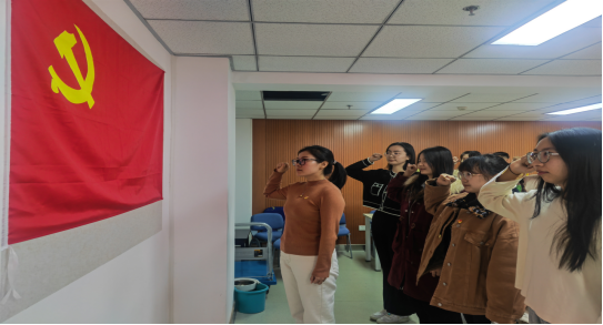 “我志愿加入中國共產黨,擁護黨的綱領,遵守黨的章程……為共產主義奮斗終身,隨時準備為黨和人民犧牲一切,永不叛黨!”伴隨《國際歌》開場,在作曲系學生黨支部書記史菁的帶領下,作曲系學生黨支部4名新黨員同支部老黨員和入黨積極分子代表一起面對鮮紅的黨旗,莊嚴地舉起右手,向黨旗宣誓,表達了為共產主義事業(yè)奮斗終身的決心!