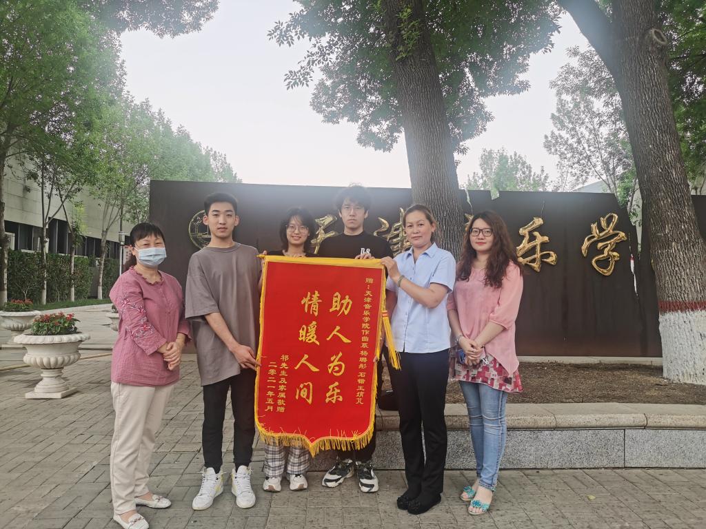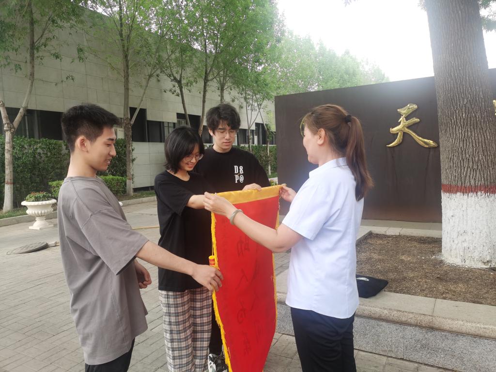傷者手術出院病情穩定后,非常感謝三名同學見義勇為的舉動,傷者家屬準備了錦旗和感謝信來到學校,感謝三位同學的熱心幫助。“助人為樂,情暖人間!”八個字表達了患者家屬對三名同學深深的感激之情。