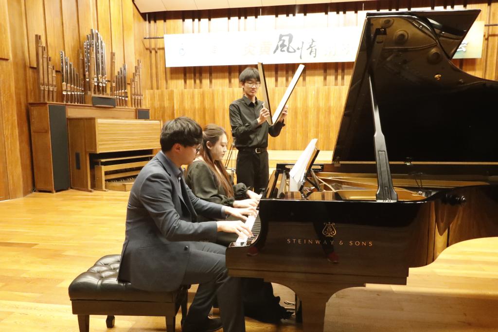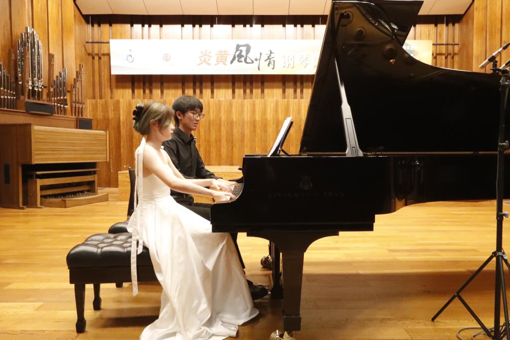 《炎黃風情》鋼琴四手聯彈版本是由天津音樂學院校友、青年作曲家梁爽根據鮑元愷教授創作的《炎黃風情》二十四首中國民歌主題管弦樂曲改編而成。本場音樂會是《炎黃風情》鋼琴四手聯彈版本(全集)在國內外音樂藝術院校中的首演,由鋼琴系全體教師推薦、選拔并指導12組24位優秀學生代表傾情演繹。品味炎黃風情聆聽中國故事音樂會上半場,演奏了《燕趙故事》《云嶺素描》和《黃土悲歡》三部組曲。《燕趙故事》描繪了居住在燕趙大地、東臨渤海、西接太行的先民留下的《小白菜》《小放牛》《茉莉花》和《對花》這樣流傳久遠的民謠絕唱。《云嶺素描》描繪了誕生在高原勝地、彩云之南,深受二十六個風采各異的民族影響和文化滋養而誕生的漢族民歌《小河淌水》《放馬山歌》《雨不灑花花不紅》和《猜調》。《黃土悲歡》是由《女娃擔水》《夫妻逗趣》《走絳州》和《藍花花》四首膾炙人口的陜北民歌作為主題,深情訴說著黃土高原上的人間悲喜故事。