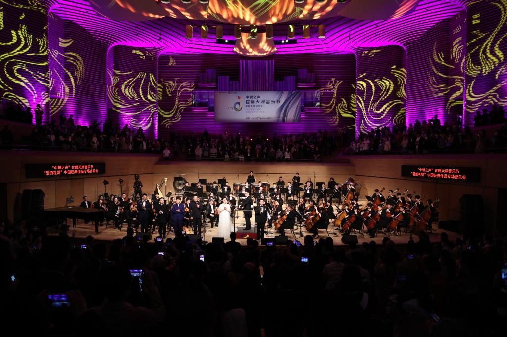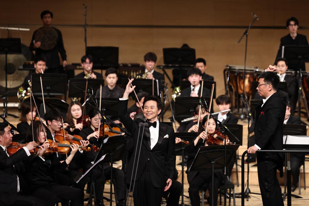 本站訊(編輯 傅燕 王樂萱 攝影 沈岳 王旌 劉東岳 繳惠琳 責任編輯 張立杰)愛是人世間的永恒議題,“愛是生命的火焰,沒有它,一切變成黑夜?!睘榱烁桧瀽?,音樂得以存在;也正是音樂的存在,這些“愛”才得以跨越時間長河。愛的頌歌唱響千萬遍,愛的禮贊走進萬家燈火、裊裊炊煙……4月28日晚,在廣大觀眾的熱切期盼下,眾多名家齊聚天津大劇院,聯袂唱響“中銀之聲”首屆天津音樂節重磅演出——“愛的禮贊”中國經典作品專場音樂會。著名指揮家李心草首次執棒天津音樂學院青年交響樂團,閻維文、雷佳、王宏偉、元杰、岳麟等著名音樂家聯袂登臺,與天音師生一同用動人音樂點亮美好夜晚,奏響一曲曲愛的贊歌。著名主持人管軍主持音樂會。