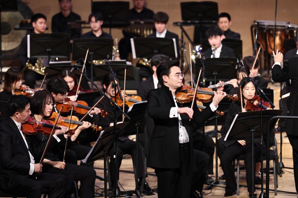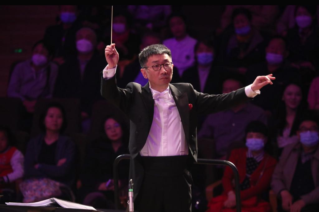 演出伊始,著名指揮家、中國音樂學院院長李心草執棒天津音樂學院青年交響樂團震撼上演關峽的大型交響樂作品《第一交響曲》,重現那段激情燃燒的歲月。樂曲充分運用人性化的音樂表達方式,升華出昂揚向上的時代精神,一曲振奮人心,引得現場觀眾不禁喝彩。