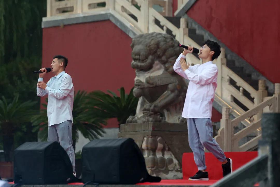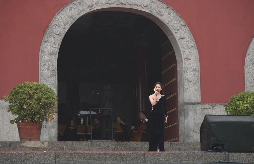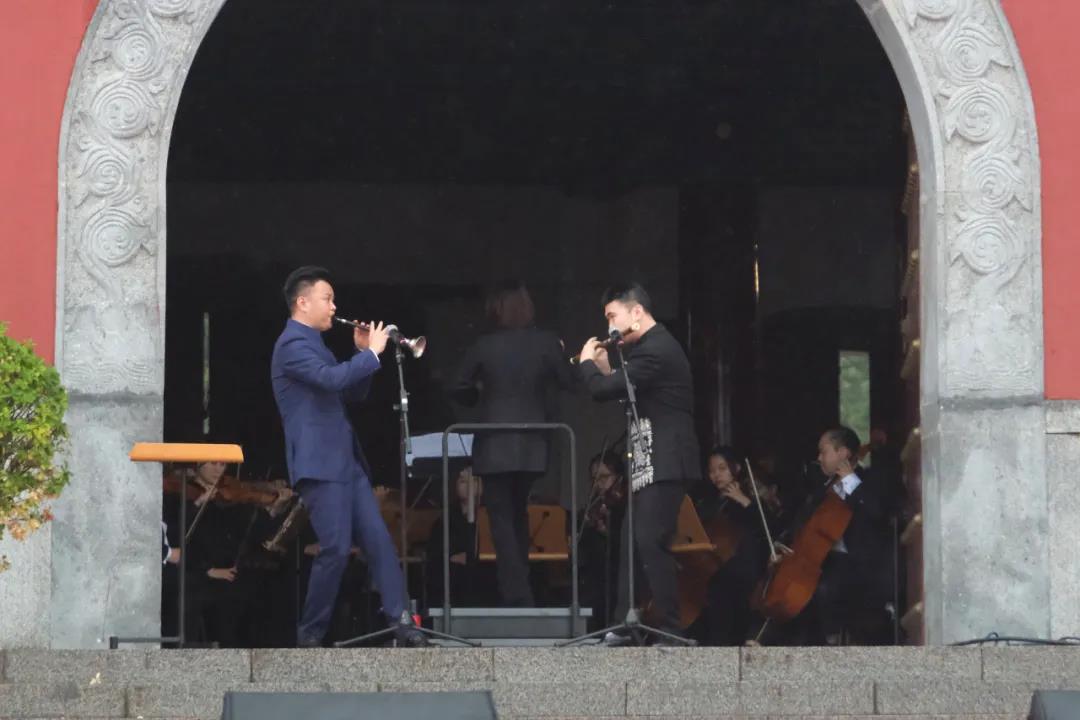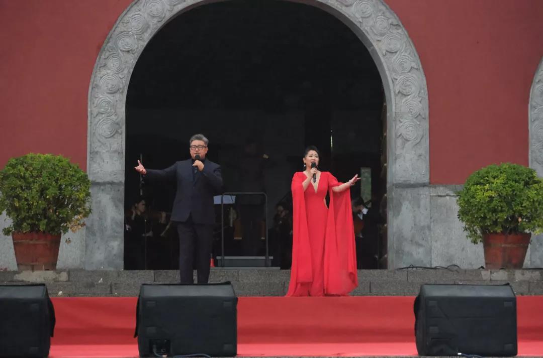 天津音樂學(xué)院青年交響樂團演奏的交響詩《紅旗頌》、交響組曲《海霞》(選段)、交響組曲《紅色娘子軍》(選段)、管弦樂《北京喜訊到邊寨》等旋律在盤山腳下激情奏響,氣勢磅礴、催人奮進,勾畫出一幅幸福祥和的生活愿景。“我們的家鄉(xiāng)在希望的田野上,炊煙在新建的住房上飄蕩,小河在美麗的村莊旁流淌”。民族聲樂系王乙婷老師演唱經(jīng)典歌曲《在希望的田野上》,描繪了豐收節(jié)日的美好藍圖。聲樂系苑璐、曹穎兩位老師一同獻唱,女生獨唱《唱支山歌給黨聽》表達了感恩黨、贊頌黨、心向黨的熾熱情感,合唱《不忘初心》道出了追求美好生活的心聲。民樂系王展展、李樂兩位老師合作演出竹笛、嗩吶協(xié)奏曲《長白山歌》,聲情并茂,韻味醇厚。手風(fēng)琴鍵盤系學(xué)生張之遠演奏的手風(fēng)琴協(xié)奏曲《青春情懷》,表達了忠誠于黨、報效祖國的赤誠之情。現(xiàn)代音樂系學(xué)生青春勵志歌曲聯(lián)唱《可可托海的牧羊人》《少年》《你的答案》《追夢赤子心》以及王超老師的女聲獨唱《追尋》等節(jié)目接連登場,持續(xù)點燃現(xiàn)場氣氛。著名女高音歌唱家、聲樂系主任馬梅演唱經(jīng)典曲目《我愛你,中國》,澎湃歌聲傳遞真摯愛國情感,慷慨激揚、感人至深。