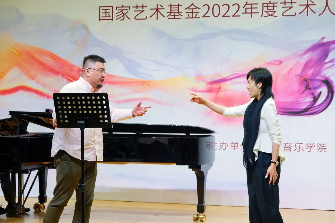 在二度創作的交流環節,大家共同聆聽了《蘭花花》完整的第三幕第二場,近距離欣賞了關致京(飾演周老爺)、扣京(飾演趕羊)、趙麗麗(飾演蘭花花)三位歌唱家的精彩表演,感受到了人物內心的矛盾與沖突以及細膩感人的音樂表達。