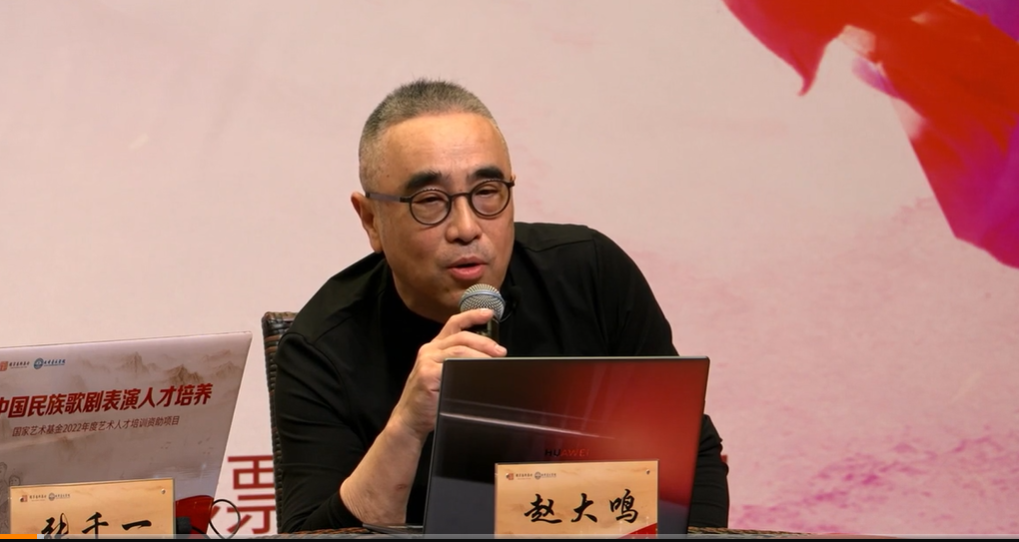 本站訊(編輯 張一 攝影 李棟 管香穎 賀詩淇 責任編輯 劉文平)4月1日下午,國家藝術基金資助項目《中國民族歌劇表演人才培養》大師班在天津音樂學院南校區報告廳舉行。著名作曲家、中國音協副主席、原總政歌舞團團長張千一,全國政協委員、原總政歌舞團創作室主任趙大鳴,以《歌劇<蘭花花>創作談》為題,圍繞民族歌劇創作中的“戲劇與人物”展開相關話題,暢談了歌劇《蘭花花》的創作歷程、觀念與藝術追求。本節專家課在“新華網”微博、“音樂周報”視頻號、“天津音樂學院”視頻號進行直播,10余萬網友通過線上觀看,與校內外師生共享課程精彩內容。