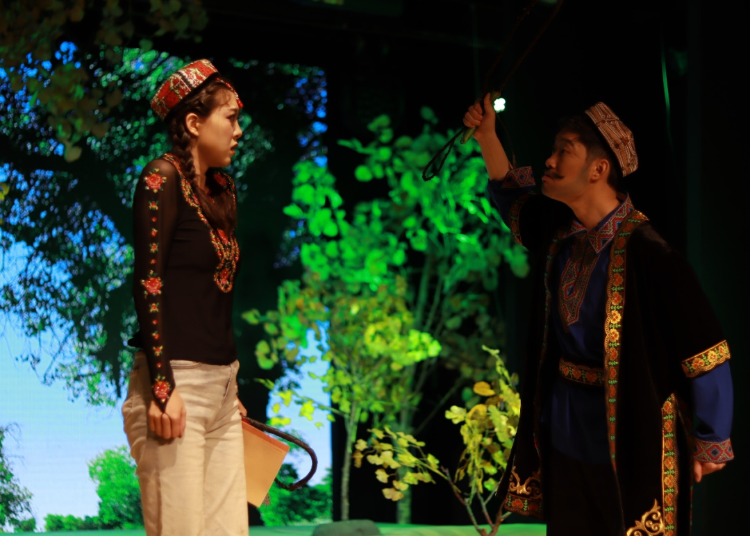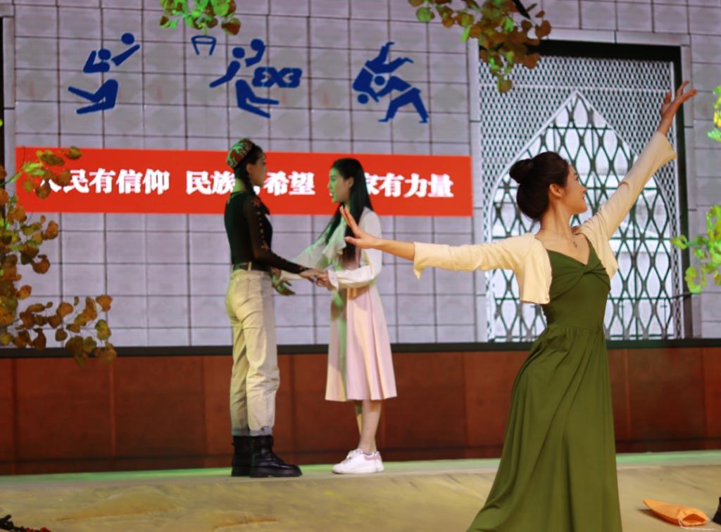 原創(chuàng)話劇《胡楊林的歌聲》以天津音樂學院赴新疆和田實習支教團的感人事跡為原型進行創(chuàng)作,由戲劇影視系青年教師孫曉星編劇,張華軒宇、賈穎等老師排演指導,李東耀舞美設計。