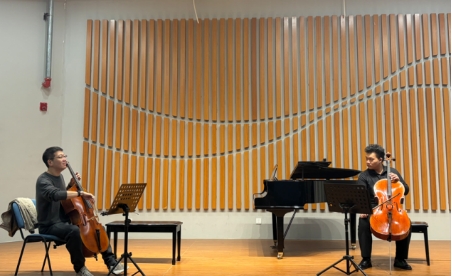 音樂會曲目涵蓋多個經(jīng)典與特色作品,莫扎特的《F大調(diào)雙簧管四重奏K370》無疑是本場音樂會的一大亮點,展現(xiàn)了雙簧管與弦樂之間珠聯(lián)璧合的默契,讓聽眾仿佛置身于古典音樂的夢幻世界。舒曼的《八首小品作品83號之三》中,單簧管、中提琴和鋼琴相互交織,用音符訴說著舒曼內(nèi)心深處的情感,帶聽眾領(lǐng)略浪漫主義音樂的獨特魅力。《圓號 長號 鋼琴三重奏 第一樂章 D.L.新泊松》,圓號的圓潤、長號的雄渾、鋼琴的靈動,三種不同音色的樂器在第一樂章中碰撞出奇妙的火花,讓聽眾感受到音樂的多元與包容。勃拉姆斯的《g小調(diào)第一鋼琴四重奏 第四樂章:吉普賽風(fēng)格的回旋曲》將音樂會的氣氛推向高潮。這一樂章充滿了吉普賽風(fēng)格的熱情與奔放,鋼琴、小提琴、中提琴和大提琴的配合默契十足,讓聽眾在激情澎湃的音樂中感受吉普賽文化的獨特魅力。最后,亨利·布羅德 - 多尼采蒂的《拉美莫爾的露琪亞》主題二重奏以其優(yōu)美的旋律和深情地演繹,將多尼采蒂歌劇《拉美莫爾的露琪亞》中的經(jīng)典主題展現(xiàn)得淋漓盡致,帶聽眾走進(jìn)那個充滿愛恨情仇的音樂世界。演員們的精湛演繹贏得臺下觀眾陣陣掌聲,也為此次兩院教研交流活動畫上圓滿句號。