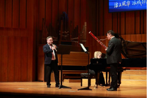 晚間,“沽上風(fēng)華 冰城印象”室內(nèi)樂精品課程教研交流專場音樂會在天津音樂學(xué)院音樂廳精彩上演。校黨委書記王歡、哈爾濱音樂學(xué)院院長宋飛出席活動。
