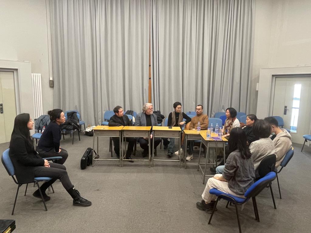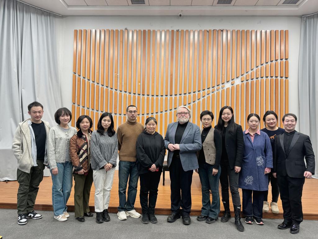 專家課后,托馬什?托馬謝夫斯基教授與管弦系弦樂教研室和附中管弦學(xué)科的教師們開展了學(xué)術(shù)交流座談會(huì)。座談會(huì)由管弦系主任宋強(qiáng)教授主持,管弦系弦樂專業(yè)教師針對(duì)各自教學(xué)情況,從德國音樂藝術(shù)院校的水平及狀況、室內(nèi)樂人才培養(yǎng)和音樂素養(yǎng)提升等方面進(jìn)行了探討。托馬什教授介紹了柏林藝術(shù)大學(xué)的特色及藝術(shù)氛圍,同時(shí)解答了關(guān)于學(xué)生如何克服演奏的緊張情緒、四重奏教學(xué)重點(diǎn)和巴赫的權(quán)威版本等相關(guān)提問。座談會(huì)上,雙方還就弦樂中國作品的創(chuàng)作與演奏、中西音樂文化融合等方面深入交換了意見。座談會(huì)后,管弦系向托馬什?托馬謝夫斯基教授贈(zèng)送了《劉自力中國小提琴作品集》。
