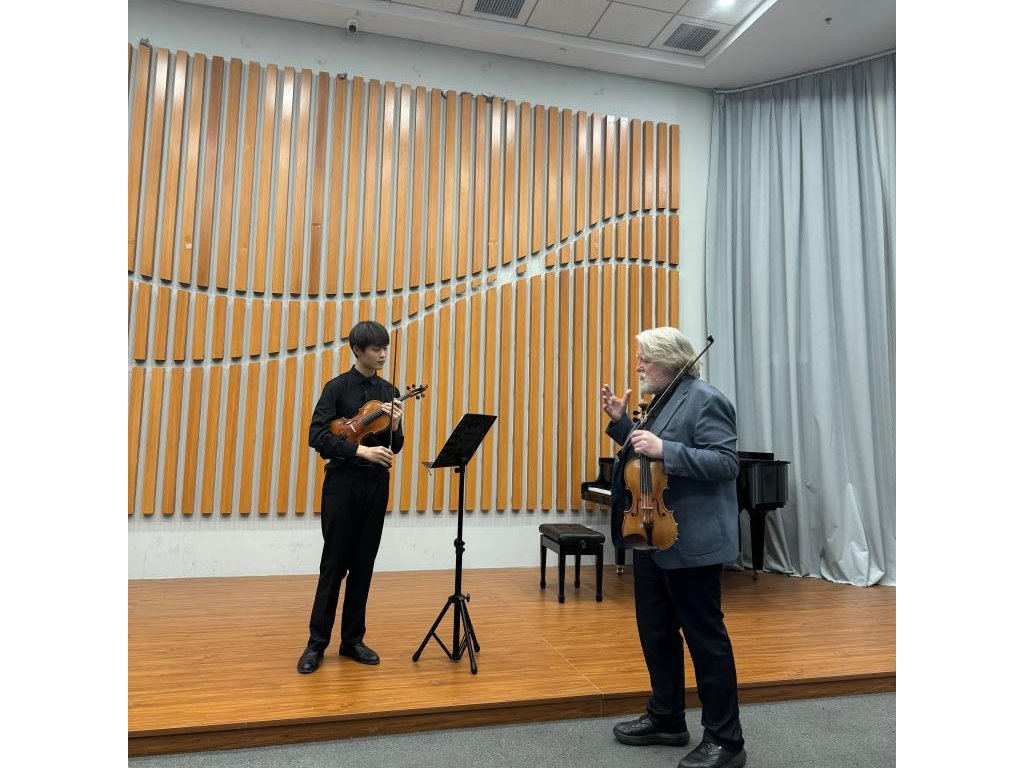 專家課上,學(xué)生們演奏了《帕格尼尼隨想曲第十課》《巴赫第一奏鳴曲第一首》,托馬什教授對(duì)學(xué)生們的演奏給予了肯定,并在技術(shù)技巧、音樂表達(dá)的走向以及音樂的傾向性等方面對(duì)學(xué)生進(jìn)行了講解和專業(yè)指導(dǎo)。