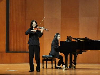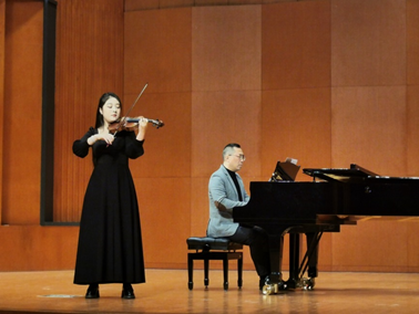 音樂會以巴洛克時期的巴赫d小調(diào)無伴奏小提琴第二組曲“阿列曼德”開場,隨后是極具技巧性的作品—帕格尼尼24首隨想曲;接下來是奏鳴曲的畫卷,由小提琴和同鋼琴一起交織,帶著我們感受了貝多芬的精神世界,同時也領(lǐng)略了亨德爾獨特的藝術(shù)風(fēng)格;一首金色的爐臺一下子把我們從西方世界帶到了大煉鋼鐵熱火朝天的中國,富有激情的演奏感染了臺下的觀眾;由兩位研究生同學(xué)為大家?guī)У男に固箍凭S奇《雙小提琴和鋼琴五首小品》,讓人感受到近現(xiàn)代作品的獨特魅力;最后回到了巴洛克時期,再一次感受巴赫,再一次聽秋的聲音。