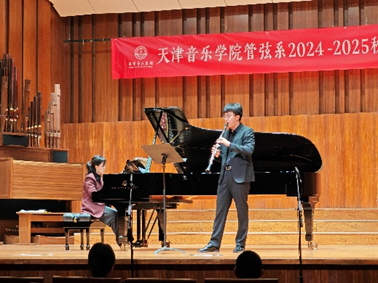 10月30日,管弦系2024-2025秋季學術交流季——“指尖上的國風韻律”解川單簧管教學音樂會在北校區音樂廳成功舉辦。在解川教授的指導下,學生們與鋼琴藝術指導樸英玉副教授攜手奉上了一場生動非凡的中國音樂盛宴。