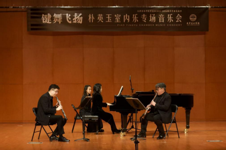 11月5日,管弦系2025~2026秋季學術交流季——“鍵舞飛揚”樸英玉室內樂專場音樂會在天津音樂學院北校區演奏廳成功舉辦。本場音樂會由管弦系藝術指導副教授樸英玉老師領銜,攜手長笛特聘教授陳兆榮、雙簧管教師劉瑞、單簧管教授解川、中提琴教師甘雨、薩克斯副教授王恒及其優秀學生薛兆麟共同演繹,為現場師生帶來了一場兼具學術深度與藝術感染力的視聽盛宴。