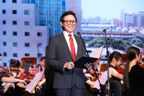 本次活動(dòng)以高水平音樂會(huì)的形式,給天音學(xué)子帶來一次難忘的開學(xué)典禮,為新學(xué)期拉開序幕。伴隨著動(dòng)人心弦的管弦樂,全體校領(lǐng)導(dǎo)為新生代表佩戴校徽,祝賀同學(xué)們正式成為一名光榮的“天音人”。學(xué)校在校生代表、手風(fēng)琴鍵盤系2019級(jí)本科生李堃,研究生新生代表、民族聲樂系2022級(jí)研究生項(xiàng)君君,教師代表、管弦系副主任宋強(qiáng)教授分別發(fā)言,表達(dá)了天音人愛國愛校的深厚情懷。著名男高音歌唱家、天津音樂學(xué)院副院長(zhǎng)王宏偉在講話中祝賀項(xiàng)目開班,對(duì)新學(xué)員和新同學(xué)的到來表示熱烈歡迎。“在推進(jìn)中國式現(xiàn)代化建設(shè)的進(jìn)程中,文藝一定大有可為!”王宏偉寄語青年學(xué)子要慎獨(dú)養(yǎng)德,以朋為友,眾行致遠(yuǎn),將“小我”融入祖國的“大我”、人民的“大我”中;秉承“追求完美,創(chuàng)造卓越”校訓(xùn),弘揚(yáng)優(yōu)良校風(fēng),牢牢把握文化傳承的“接力棒”;胸懷天下,心系家國,在歷史洪流中勇毅前行,為實(shí)現(xiàn)中華民族偉大復(fù)興而努力奮斗。