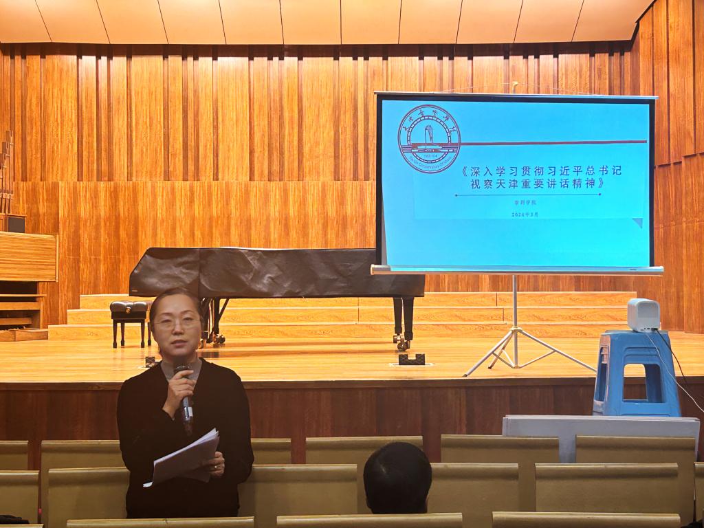 會上,吳茜書記首先向大家傳達了習近平總書記視察天津重要講話精神。她結合新學期教學、演出排練等工作任務,激勵同學們珍惜機會,在實踐中不斷豐富自己,為歌劇學院共同的奮斗目標而努力。她鼓勵同學們更好地認識世界、認識大學、認識自己,在風雨中雕琢成玉,在烈火中百煉成鋼,努力成為一名卓越的天音人!