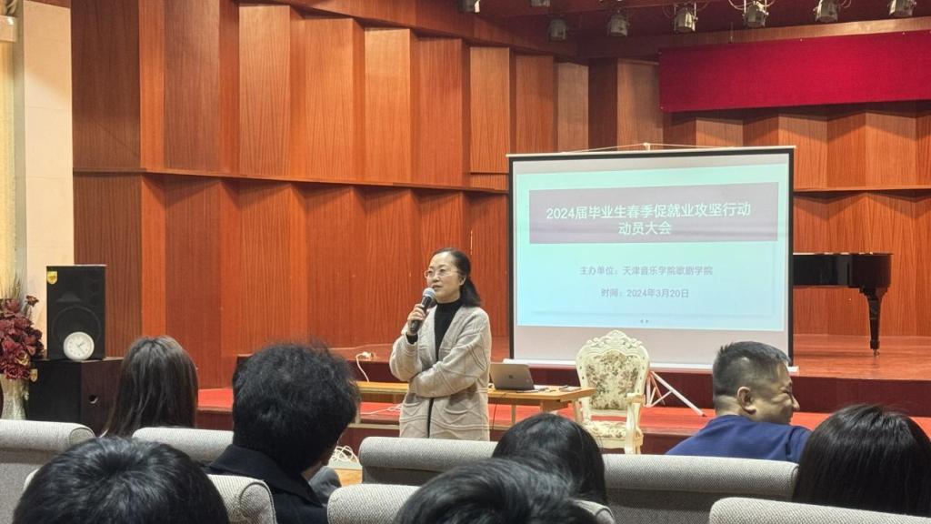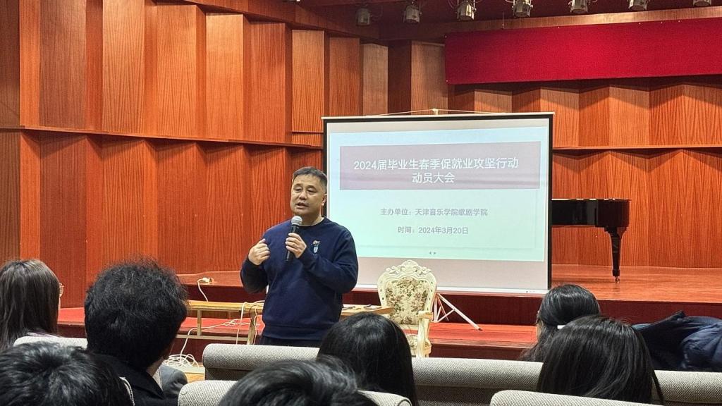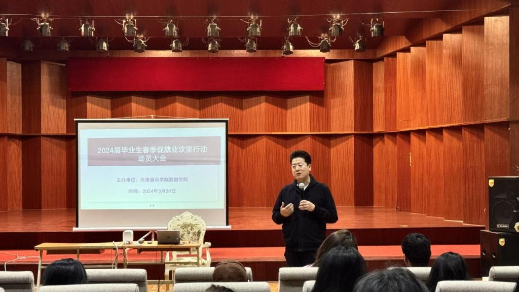 為認真落實校黨委召開的2024年畢業(yè)生就業(yè)創(chuàng)業(yè)工作部署會會議精神,更加精準地促進畢業(yè)生就業(yè),搶抓就業(yè)關(guān)鍵期,助力我院畢業(yè)生高質(zhì)量就業(yè),學(xué)院黨政領(lǐng)導(dǎo)班子召開專題工作會議研究部署具體。3月20日,天津音樂學(xué)院歌劇學(xué)院在北院歌劇中心召2024屆畢業(yè)生春季促就業(yè)攻堅行動動員大會暨就業(yè)擇業(yè)專題講座。學(xué)院黨總支書記吳茜、副院長劉慶華(主持工作)、副院長王澤南出席會議,會議由歌劇學(xué)院輔導(dǎo)員田野、趙曉詩老師主持,2024屆全體畢業(yè)生參加會議。