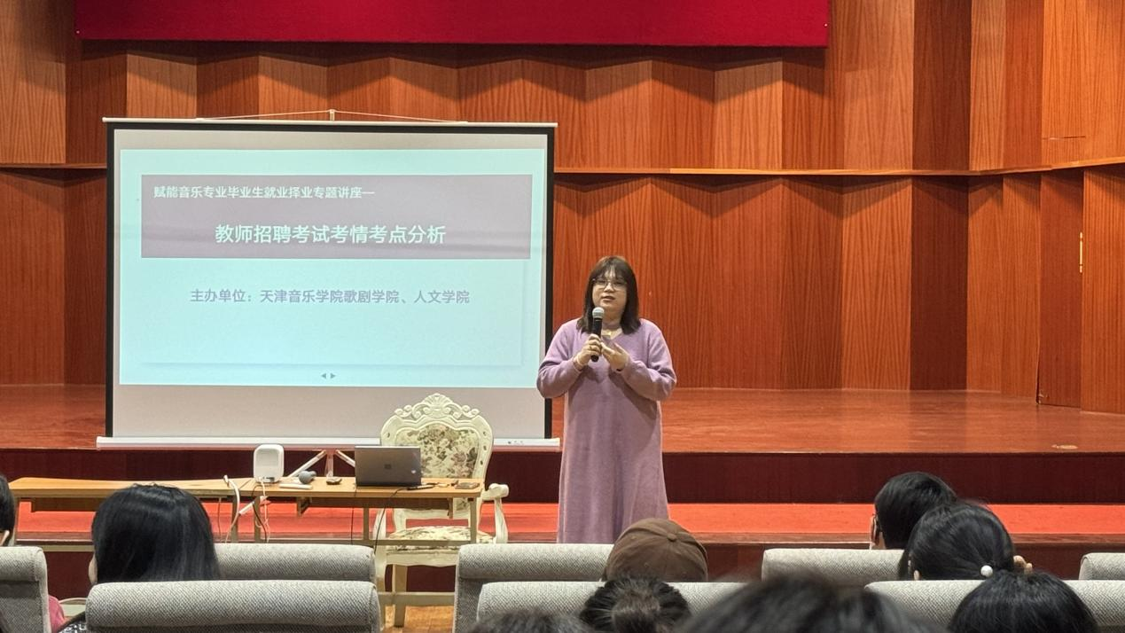為了幫助學(xué)生及時掌握2024年教師招聘的考情,歌劇學(xué)院與人文學(xué)院聯(lián)合聘請有多年教師招聘考試經(jīng)驗的苗雯月老師蒞臨現(xiàn)場,為全體畢業(yè)生做就業(yè)、擇業(yè)專題講座---教師招聘考試考情考點分析。分析天津市音樂教師招聘考試考情,復(fù)習(xí)策略,招聘形式,賦能畢業(yè)生就業(yè)擇業(yè)技能。講座聚焦應(yīng)屆畢業(yè)生關(guān)心的就業(yè)問題,全方位介紹招聘政策流程及當前教師需求信息,提高學(xué)生對招聘準備的領(lǐng)悟力,促進學(xué)生抓住時間機會窗,進而提升求職成功率。