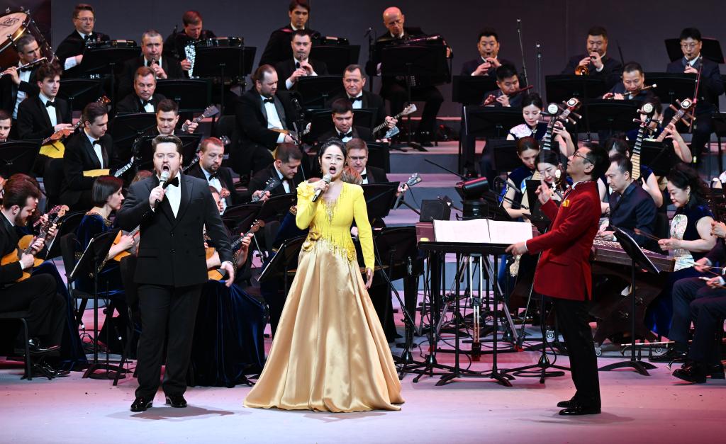 本次“中俄文化年”開幕式暨慶祝中俄建交75周年專場音樂會由中國中央民族樂團和俄羅斯奧西波夫民族樂團的藝術家共同演繹,我院青年英才陳瀅竹老師與俄羅斯男高音歌唱家伊戈爾·莫洛佐夫一同唱響《喀秋莎》(俄語版)和《春風十萬里》。